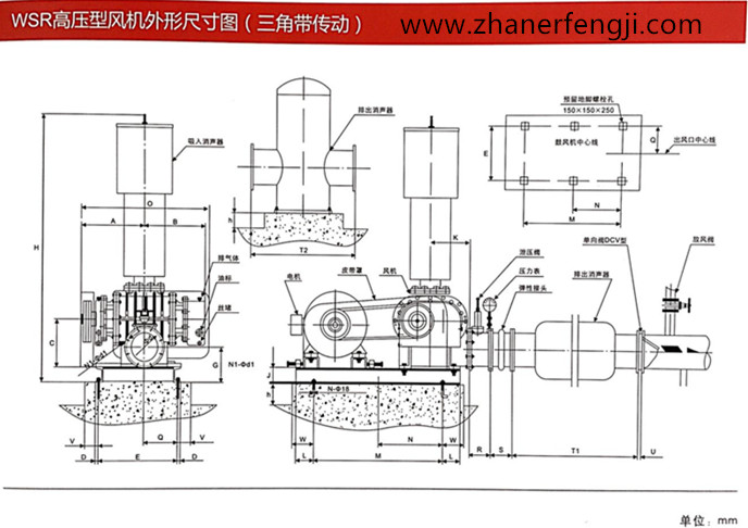 高壓型羅茨鼓風機 高壓羅茨鼓風機是羅茨風機中的其中一種。主要服務(wù)于污水處理廠、發(fā)電廠、煤礦化工廠、水泥、冶金、粉塵或顆粒、印染廠等大型工廠、水產(chǎn)養(yǎng)殖等眾多領(lǐng)域。接下來一起看看高壓型羅茨鼓風機外形尺寸圖(三角帶型):